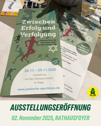 Wir danken der SG Telgte und insbesondere Ulrich Winckler herzlich für die Initiative und das Engagement, diese Ausstellung nach Telgte zu holen. Ebenso gilt unser Dank Bürgermeisterin Katja Behrendt, die in ihrer Eröffnungsrede betonte, dass Sport nie unpolitisch ist: In Zeiten zunehmenden Antisemitismus und Rassismus gelte es, Flagge zu zeigen – für Vielfalt, Toleranz und Menschlichkeit.