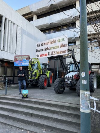 Unser politisches Jahr hat mit dem bundesweiten Bauernprotest lautstark begonnen. Der Landwirtschaftliche Ortsverband (LOV) Telgte-Westbevern überreichte am 10. Januar Vertretenden aller Fraktionen im Rat der Stadt Telgte die Resolution „Zu viel ist zu viel“. Mit zwei geparkten Schleppern vor dem Rathaus machten rund 30 Landwirtinnen und Landwirte aus unserer Stadt auf ihre Situation und ihren Ärger über die geplante schrittweise Streichung der Steuerrückerstattung für den Agrardiesel aufmerksam.