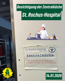Am Mittwoch, dem 14. Januar 2026, besuchten wir gemeinsam mit Vertreterinnen und Vertretern aus Verwaltung und Politik, Eltern der Sekundarschule sowie der Schülervertretung des Maria-Sibylla-Merian-Gymnasiums die Zentralküche des St. Rochus-Hospitals. Diese versorgt nicht nur das Hospital, dessen Außengruppen und das Clemensstift, sondern auch die Mensa der Sekundarschule, des Gymnasiums und drei der vier Telgter Grundschulen. Täglich verlassen 1950 Mahlzeiten die Küche. Küchenmeister Jürgen Unland und Geschäftsführer Daniel Freese führten uns durch die Einrichtung und beantworteten unsere Fragen.