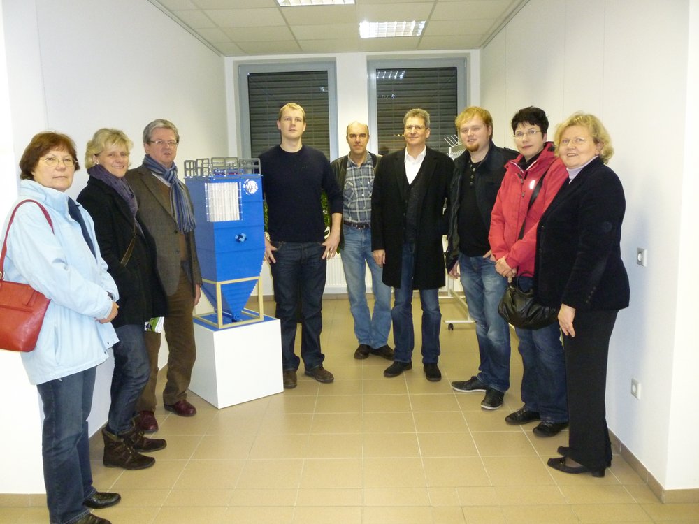 Die Gäste aus der Kommunalpolitik ließen sich die historische Entwicklung des mittelständischen Unternehmens erläutern. Am Anfang - 1845 - stand ein Drei - Mann - Hufschmiedebetrieb; heute erwirtschaften 200 Mitarbeiter/innen aus der Region einen Umsatz von jährlich 40 Mio. € vornehmlich in Europa, aber ebenso in den USA, China und Indien. Ratsherr Gerd Klünder zeigte sich beeindruckt von der innovativen Kraft des Unternehmens, die sich daran ablesen lässt, dass 55 Konstrukteure Maschinen entwickeln, die von 80 Mitarbeitern gebaut und ca. 15 Verkäufer/innen an den Mann, bzw. die Frau gebracht werden. Beispiel: 20 Stahlbandtrockner für das 2010 neu gebaute Stahlwerk von Thyssen - Krupp in Mobile, Alabama.