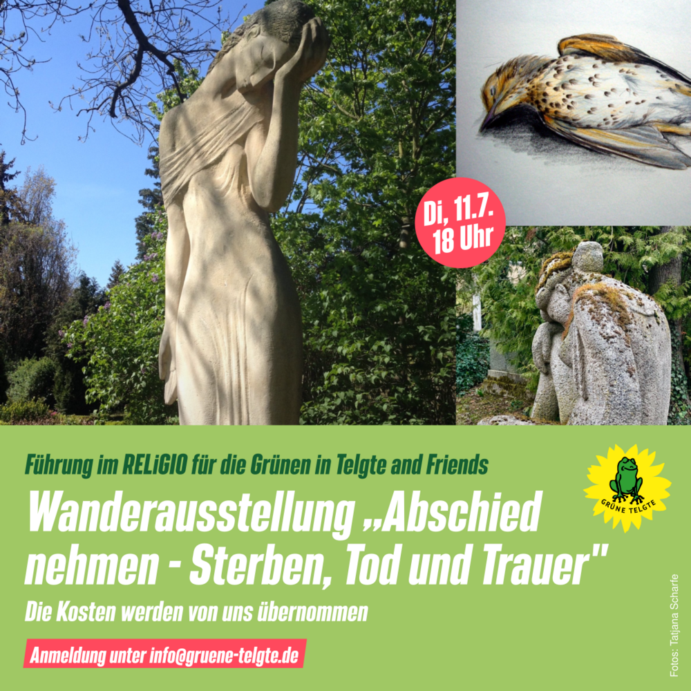 Die Führung, extra für die Grünen in Telgte and Friends, beginnt am kommenden Dienstag, 11. Juli, um 18 Uhr. Die Kosten übernimmt der grüne Ortsverband, Treffen ist direkt am Religio. Aufgrund der beschränkten Teilnehmer*innenzahl wird um Anmeldung gebeten, einfach per Mail an info@gruene-telgte.de