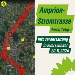 Die Verwaltung befürwortet grundsätzlich eine Bündelung der Wechselstrom- und Gleichstromleitung östlich von Telgte. Sollte die Freileitung – wie aktuell von Amprion favorisiert – westlich von Telgte gebündelt mit der Bahntrasse geplant werden, fordert die Stadtverwaltung, dass dann auch die Abstände zur Bebauung wie bei neuen Leitungsführungen eingehalten werden müssen und dass die Planungen des Gleichstrom-Erdkabels, der Wechselstrom-Freileitung und eines neuen Umspannwerks koordiniert werden müssen.