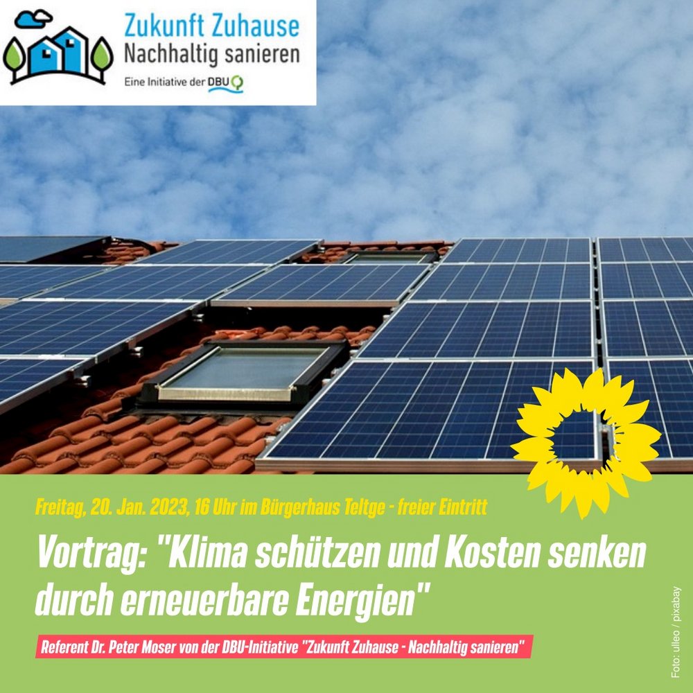 Unter dem Titel „ Klima schützen und Kosten senken durch alternative Energien“ bieten die Grünen am Freitag, dem 20. Januar ab 16 Uhr im Bürgerhaus für alle Interessierten einen Vortrag von Dr. Peter Moser an, der einen Überblick zur Aus- und Nachrüstung von Häusern mit alternativer Haustechnik gibt. Was ist möglich, wie ist das Kosten-Nutzen-Verhältnis und wie packen wir das an? Hier gibt es konkrete Informationen für alle, die alternative Energien nutzen wollen.