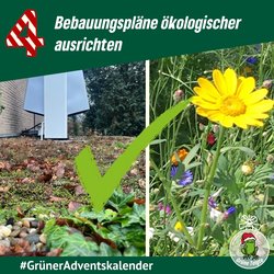 Wahlversprechen: Bebauungspläne ökologischer ausrichten, zum Beispiel ohne verpflichtende PKW-Stellflächen, mit Gründächern und optimiert für Photovoltaik
