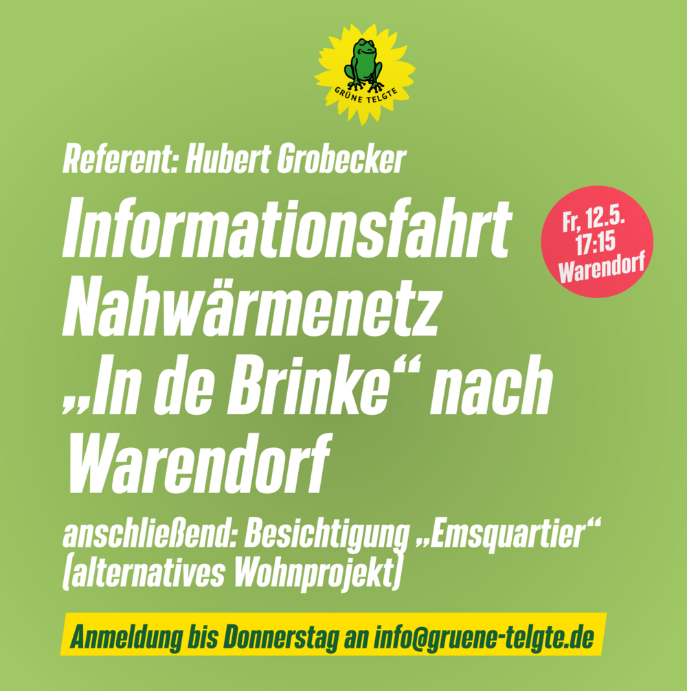 Wir möchten Euch heute zu einem Ausflug nach Warendorf am kommenden Freitag einladen, bei dem wir uns über das Nahwärmenetz im Baugebiet „In de Brinke“ informieren möchten.