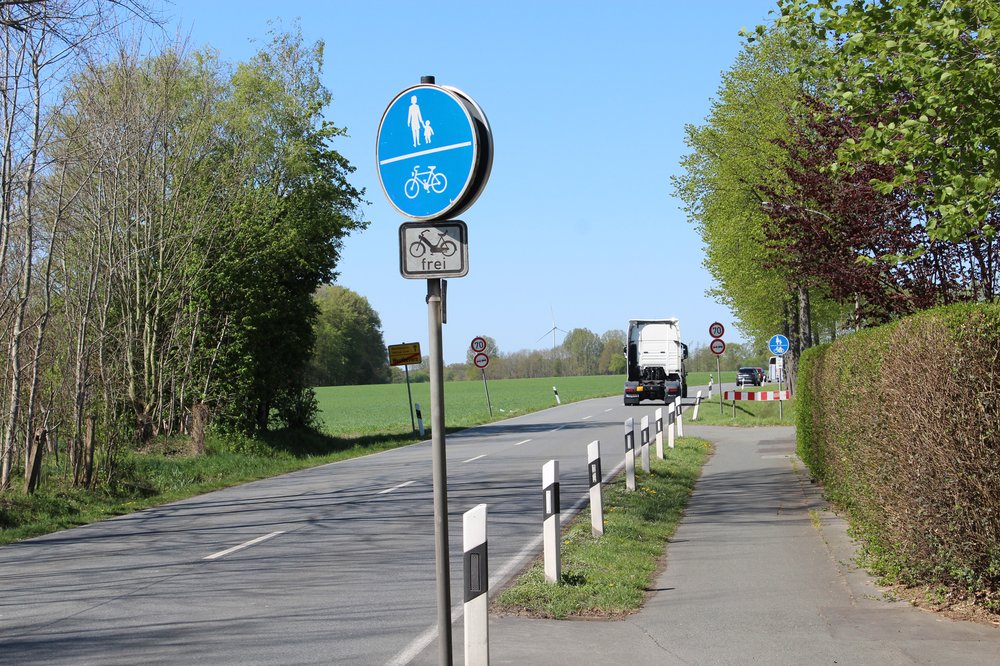 Ebenso soll an der östlichen Ortseinfahrt in Vadrup (Kreuzung Sickerhook) ein Fahrbahnteiler errichtet werden. Auch an dieser Stelle müssen Radfahrer(viele Bahnpendler) die Fahrbahn kreuzen, um den Radweg in Richtung Dorf zu erreichen. Zusätzlich soll hiermit die bereits beschlossene 30 km/h Zone(grüner Antrag aus 2019) im Dorfzentrum sichtbar begrenzt werden. Diese Begrenzung ist eine der Voraussetzungen für eine 30 km/h Zone, die dann vom Brinker Platz bis zum Ortsausgang reichen würde.