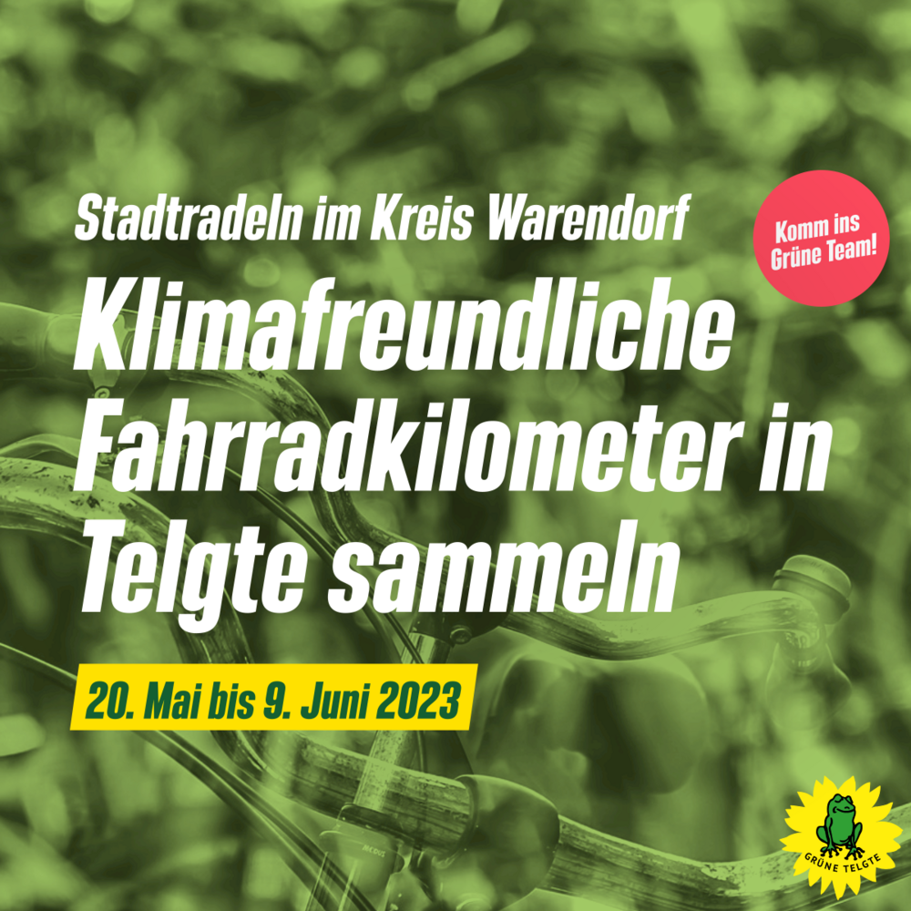 Am kommenden Samstag, 20.05. startet im Kreis Warendorf das Stadtradeln. Auch in Telgte wollen wir an 21 Tagen, bis zum 9.6.23 viele klimafreundliche Fahrradkilometer sammeln. Jeder Kilometer zählt, besonders, wenn du ihn sonst mit dem Auto zurück gelegt hättest. Egal ob e-Bike, Rennrad oder im Holland-Style: Zusammen sparen wir viel CO2 ein! Bis heute sind 2023 in allen teilnehmenden Städten und Kreisen in Deutschland schon über 24 Millionen Fahrradkilomter zusammen gekommen.